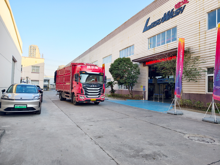 2025年12月27日,LEISUWASH S90旗舰型高压无接触洗车机发往江苏省南通海安市中国石化加油站,预计2天时间运抵用户处。设备重量2200Kg,12立方,7件货。